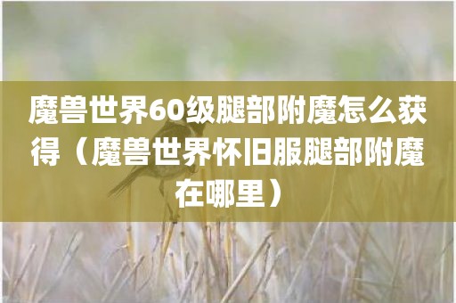 现在给大家谈谈魔兽世界60级腿部附魔怎么获得,以及魔兽世界怀旧服腿部附魔在哪里对应的知识点,如果能碰巧解决你现在面临的问题,希望对各位有所帮助。
