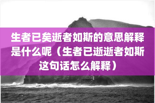 “逝者已矣,生者如斯”这句话的意思是:死去的人已经永远的逝去了,活着的依然要这样的活下去。典出自唐代诗人杜甫作品“三吏三别”之一的《石壕吏》,原文为“存者且偷生,死者长已矣”。译文:活着的人姑且活一天算一天,死去的人就永远不会复生了。
