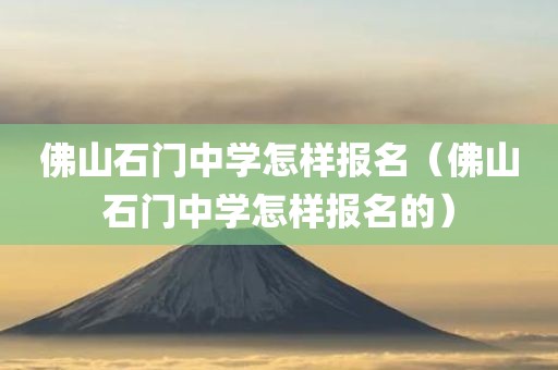 现在给大家谈谈佛山石门中学怎样报名,以及佛山石门中学怎样报名的对应的知识点,如果能碰巧解决你现在面临的问题,希望对各位有所帮助。