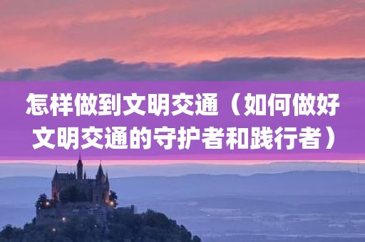现在给大家谈谈怎样做到文明交通,以及如何做好文明交通的守护者和践行者对应的知识点,如果能碰巧解决你现在面临的问题,希望对各位有所帮助。